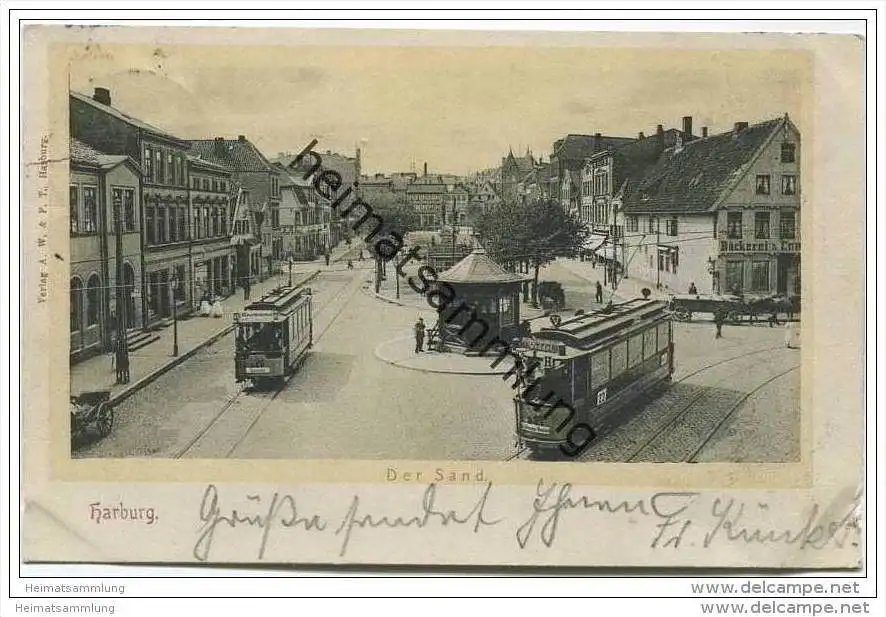 Harburg - Der Sand - Strassenbahn - Album- und Stempelspuren - minimaler Einriss links oben (E6005)