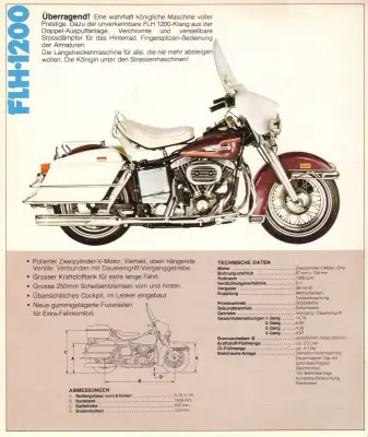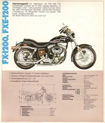 4 Seiten 18 x 21 cm FX 1200 FXE 1200 FLH 1200 XL 1000 XLCH 1000 „Motorräder mit Zweizylinder V-Motor“ Deutscher Text Guter Zustand
