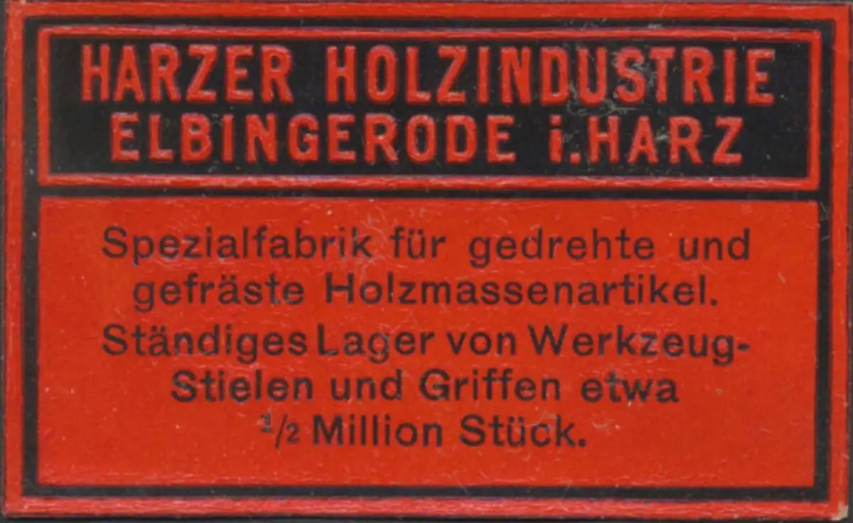 Spezialfabrik für gedrehte und gefräste Holzmassenartikel, Größe/Zustand: 3x5 , guter Zustand, Original alte Reklamemarke die seinerzeit für die Werbung benutzt wurde