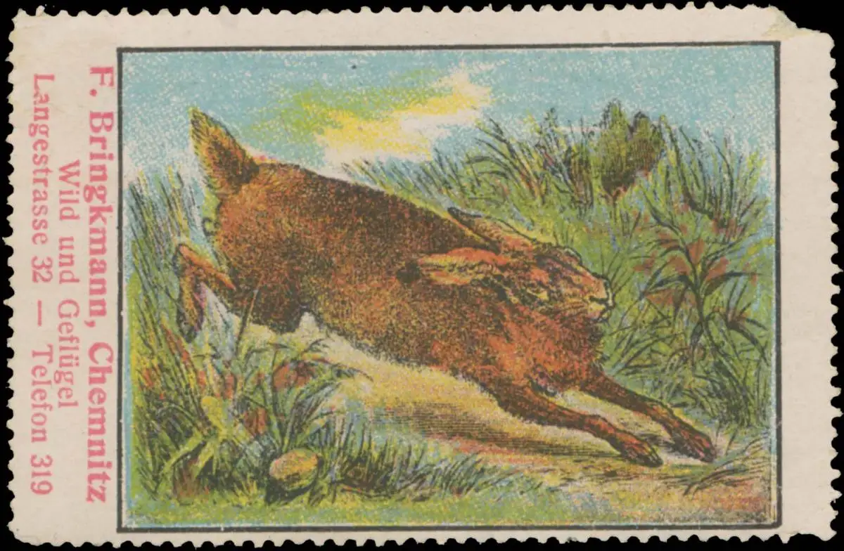 Wild und Geflügel, Langestraße 32, Größe/Zustand: 5x7 , beschädigt, Original alte Reklamemarke die seinerzeit für die Werbung benutzt wurde