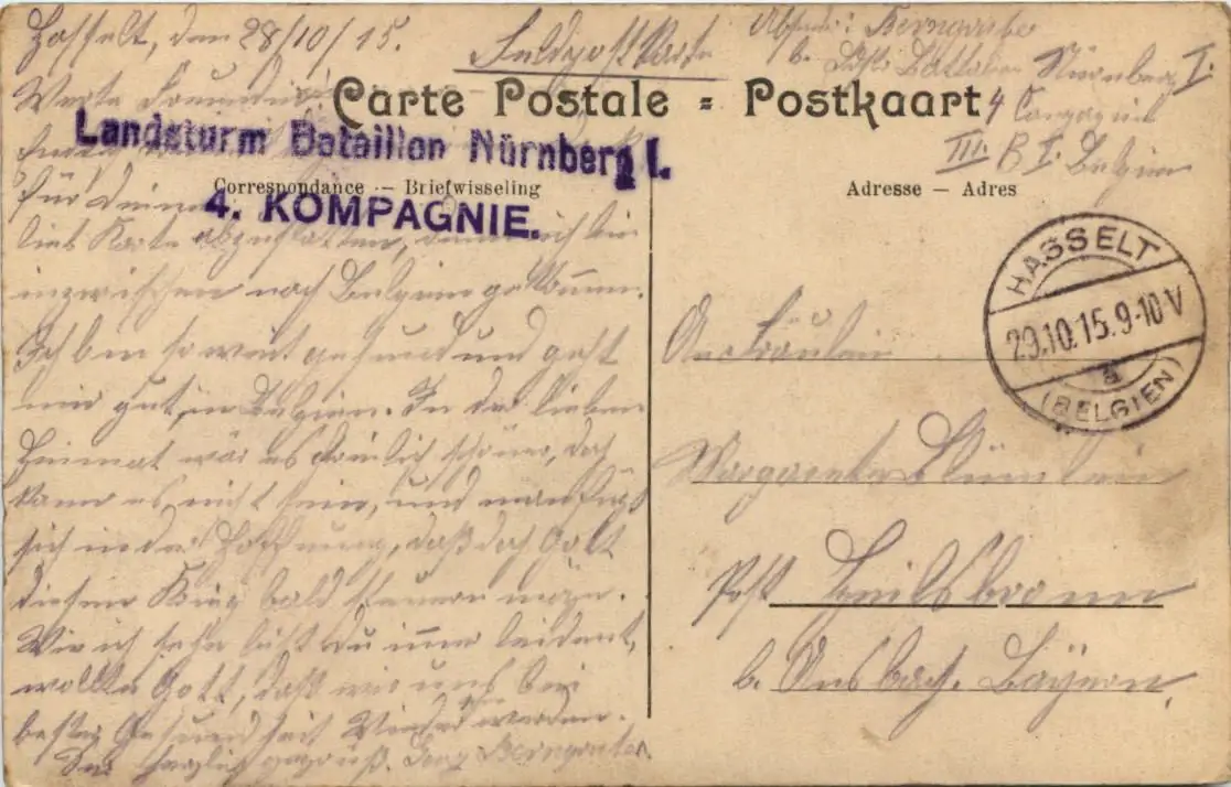 Hasselt - Rue de Maestricht - Feldpost Landsturm Bat. Nürnberg -651020
