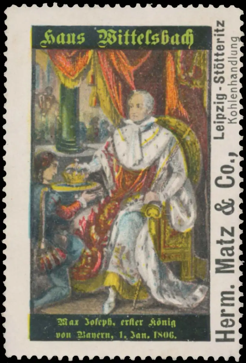 Max Joseph, erster König von Bayern, 1. Januar 1806, Größe/Zustand: 6x4 , guter Zustand, Original alte Reklamemarke die seinerzeit für die Werbung benutzt wurde