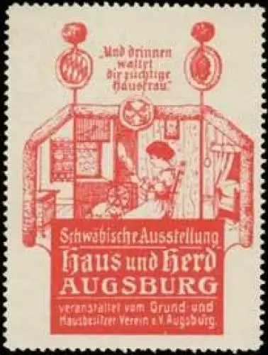 Schwäbische Ausstellung, und drinnen waltet die züchtige Hausfrau, Größe/Zustand: 6x5 , guter Zustand, Original alte Reklamemarke die seinerzeit für die Werbung benutzt wurde