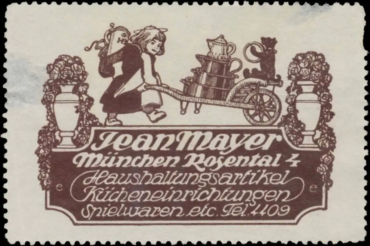 Kücheneinrichtungen, Spielwaren etc., Rosental 4, Größe/Zustand: 5x7 , beschädigt, Original alte Reklamemarke die seinerzeit für die Werbung benutzt wurde