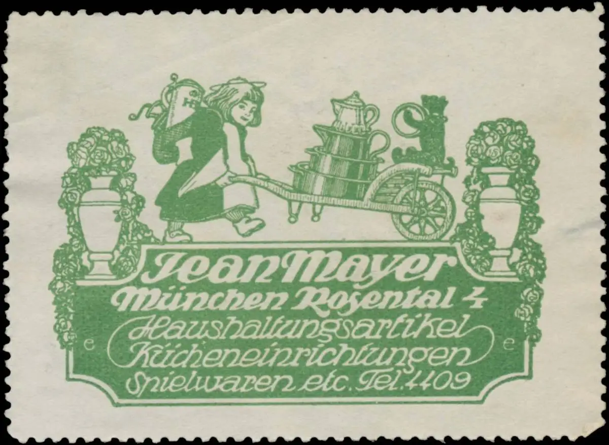 Kücheneinrichtungen, Spielwaren etc., Rosental 4, Größe/Zustand: 5x7 , beschädigt, Original alte Reklamemarke die seinerzeit für die Werbung benutzt wurde