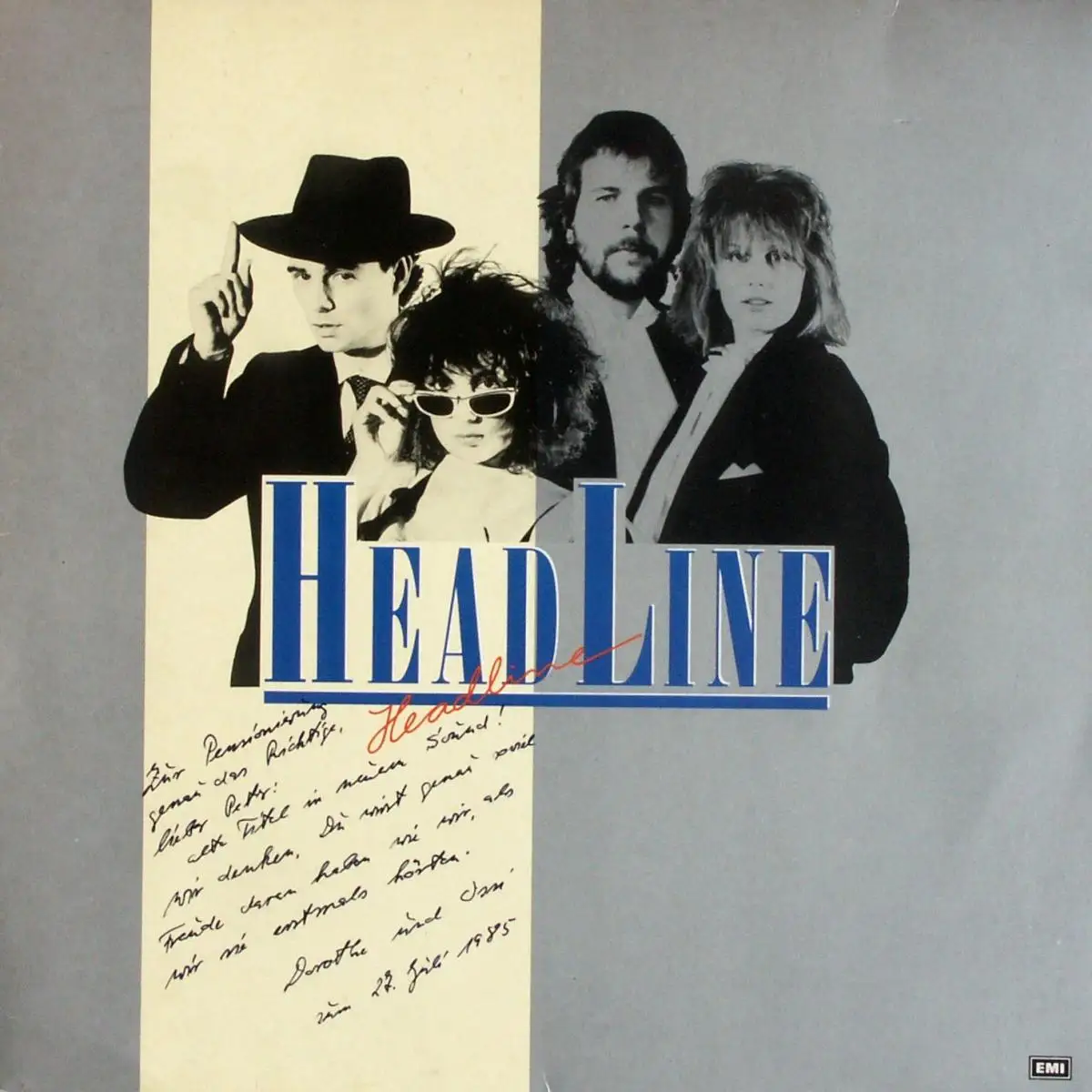 LP Album Headline - Headline, Cover beschriftet, Zustand Platte VG+ Hülle G+; Made in Germany 1985 EMI 1C 066 14 7039 1, Tracks Mr. Sandman 2:46, Heute Nacht Beginnen Wir Die Reise Sentimental Journey 2:58, Savoir Vivre 3:40, Wenn Der Weiße Flieder Wieder Blüht 3:03, Wenn Du In Meinen Träumen Bei Mir Bist Somewhere Over The Rainbow 3:38, Für Eine Nacht Voller Seligkeit 3:05, Besame Mucho 3:16, Du Sollst Mein Glücksstern Sein You Are My Lucky Star 3:17, Der Dritte Mann 3:11, Die Zeit Vergeht As Time Goes By 3:38, Golf 2:46, Sie Zogen Fort Exodus 5:07