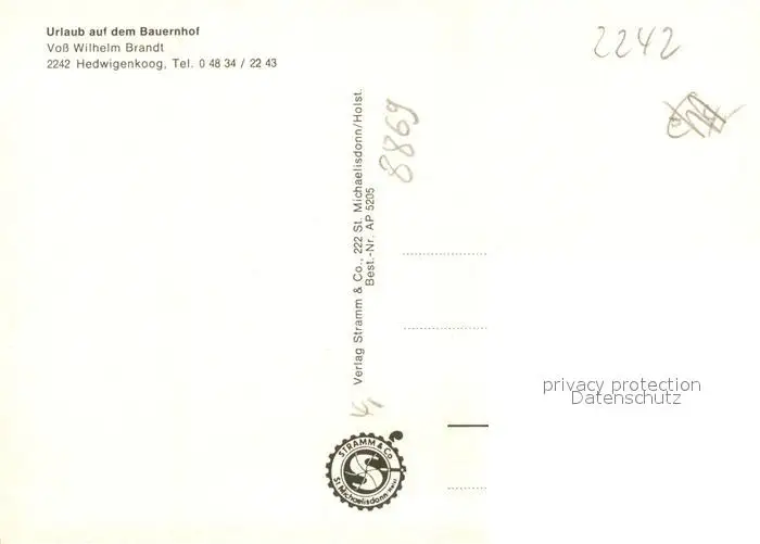 Hedwigenkoog Urlaub auf dem Bauernhof Fam Brandt Hedwigenkoog postalisch nicht gelaufen nach 1965 Erhaltung siehe scans [WerneD78] WernPID7
