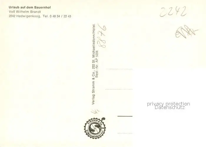 Hedwigenkoog Urlaub auf dem Bauernhof Fam Brandt Hedwigenkoog postalisch nicht gelaufen nach 1965 Erhaltung siehe scans [WerneD78] WernPID7