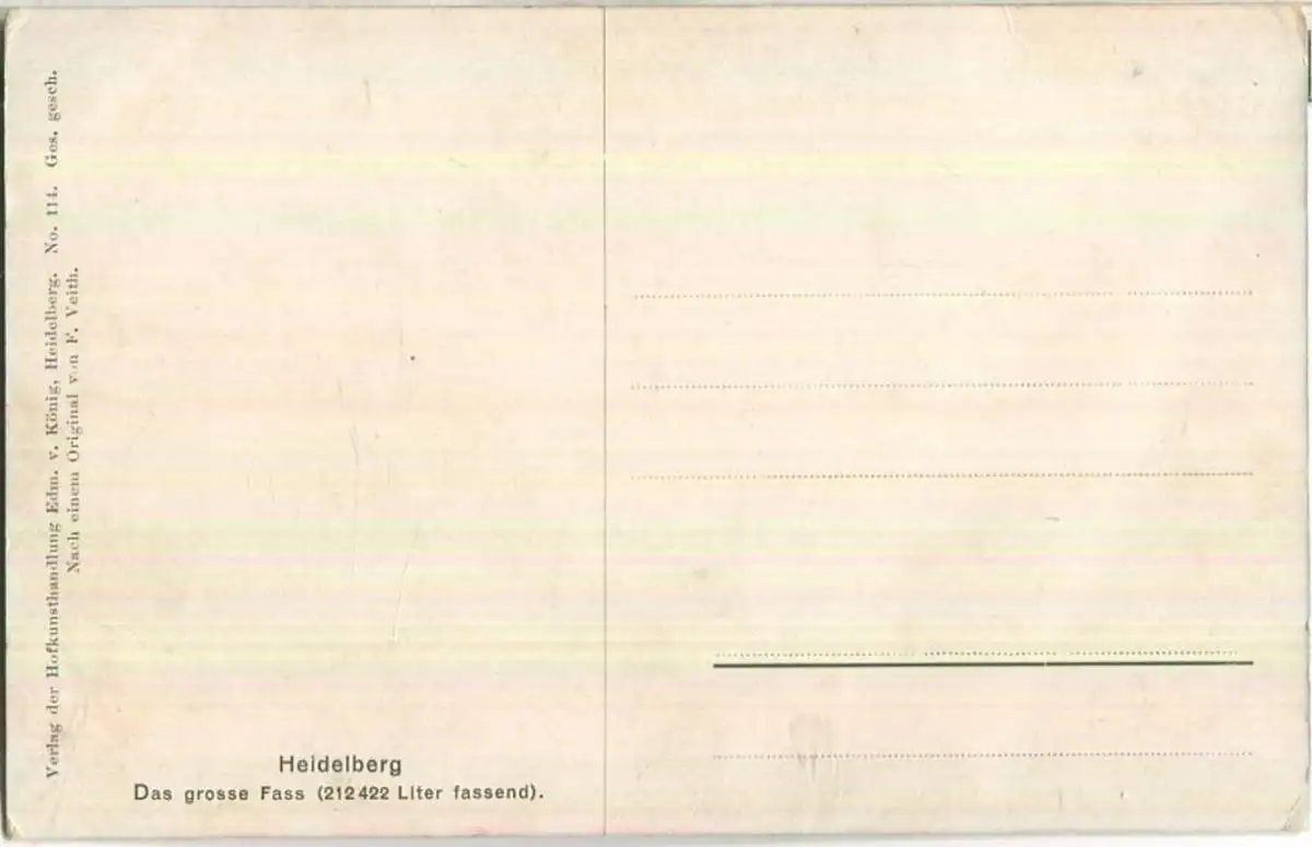 Heidelberg - Fass - signiert F. Veith - Verlag Edmund von König Heidelberg