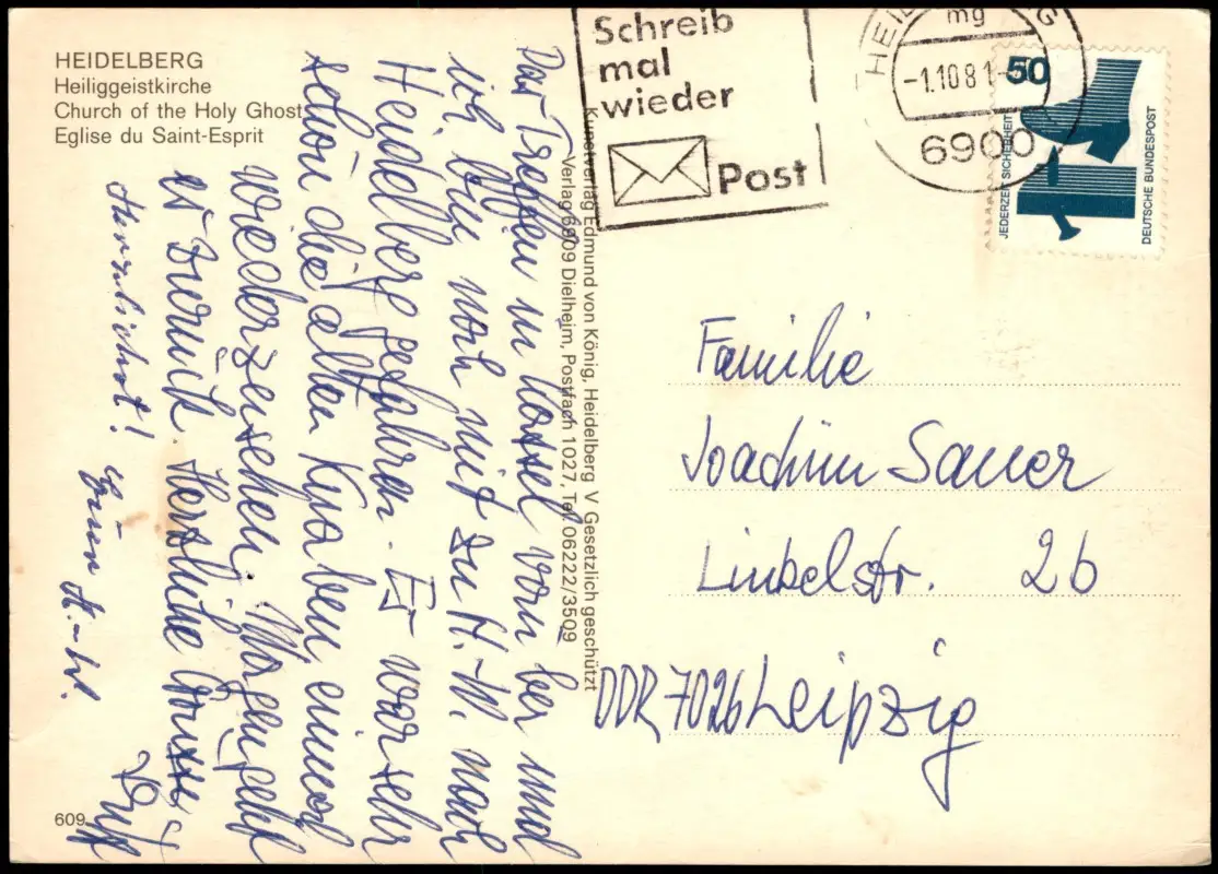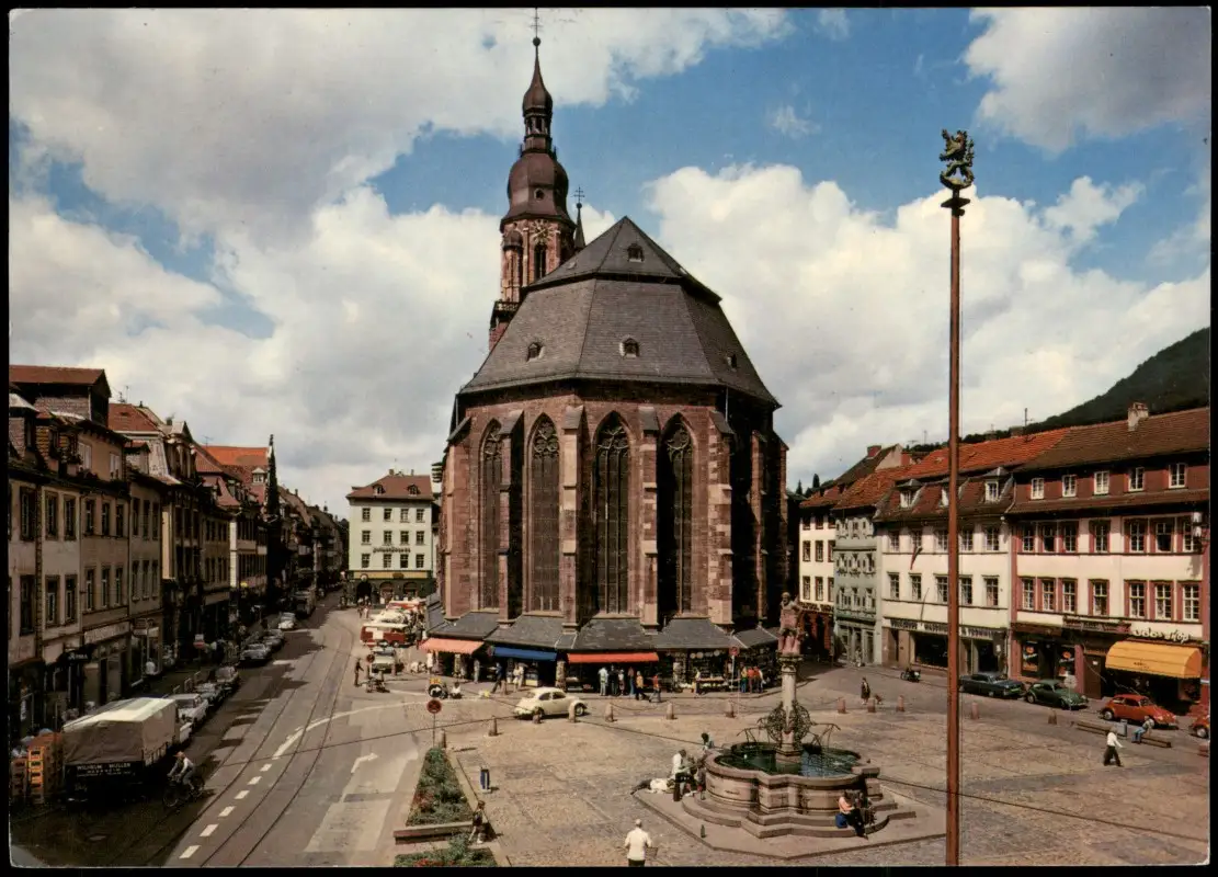 Heidelberg Heiliggeistkirche, Straßen Partie, Autos u.a. VW Käfer 1981