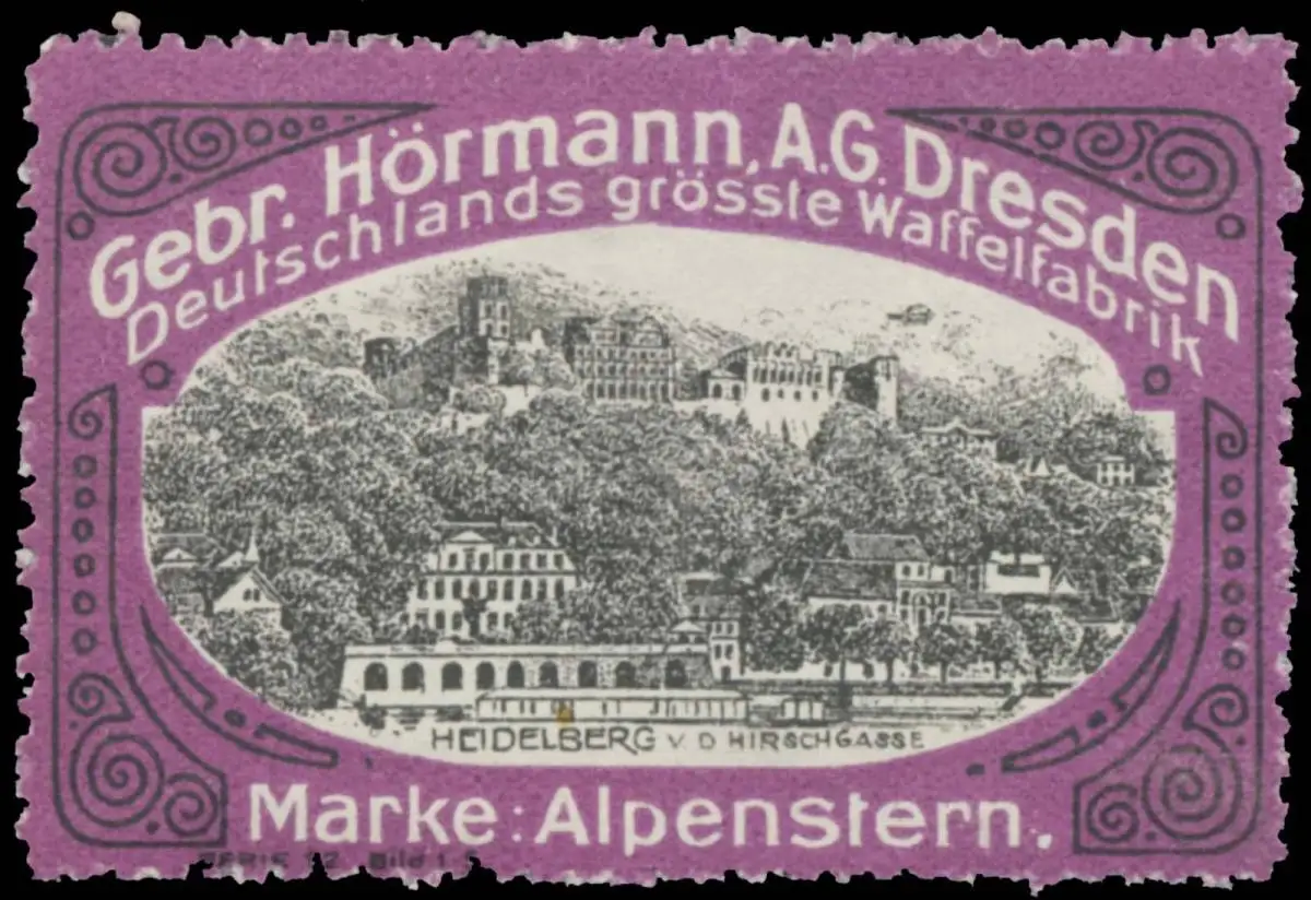 Waffeln Marke Alpenstern, Größe/Zustand: 4x5 , guter Zustand, Original alte Reklamemarke die seinerzeit für die Werbung benutzt wurde