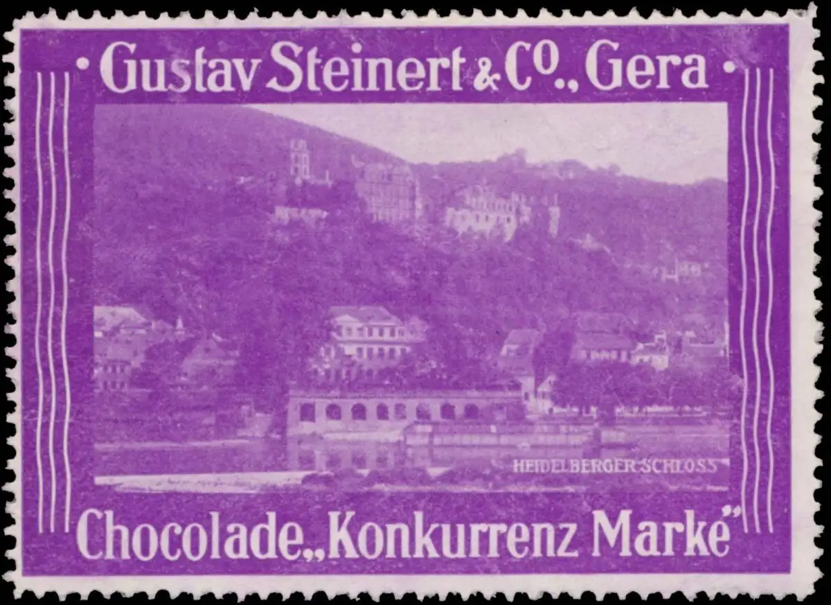 Chocolade Konkurrenz Marke, Schokolade, Heidelberg, Größe/Zustand: 5x6 , guter Zustand, Original alte Reklamemarke die seinerzeit für die Werbung benutzt wurde