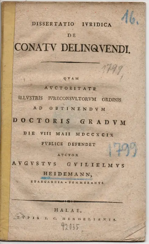 Heidemann, August Wilhelm: De conatu delinquendi (Über den Drang, sich zu verschulden).