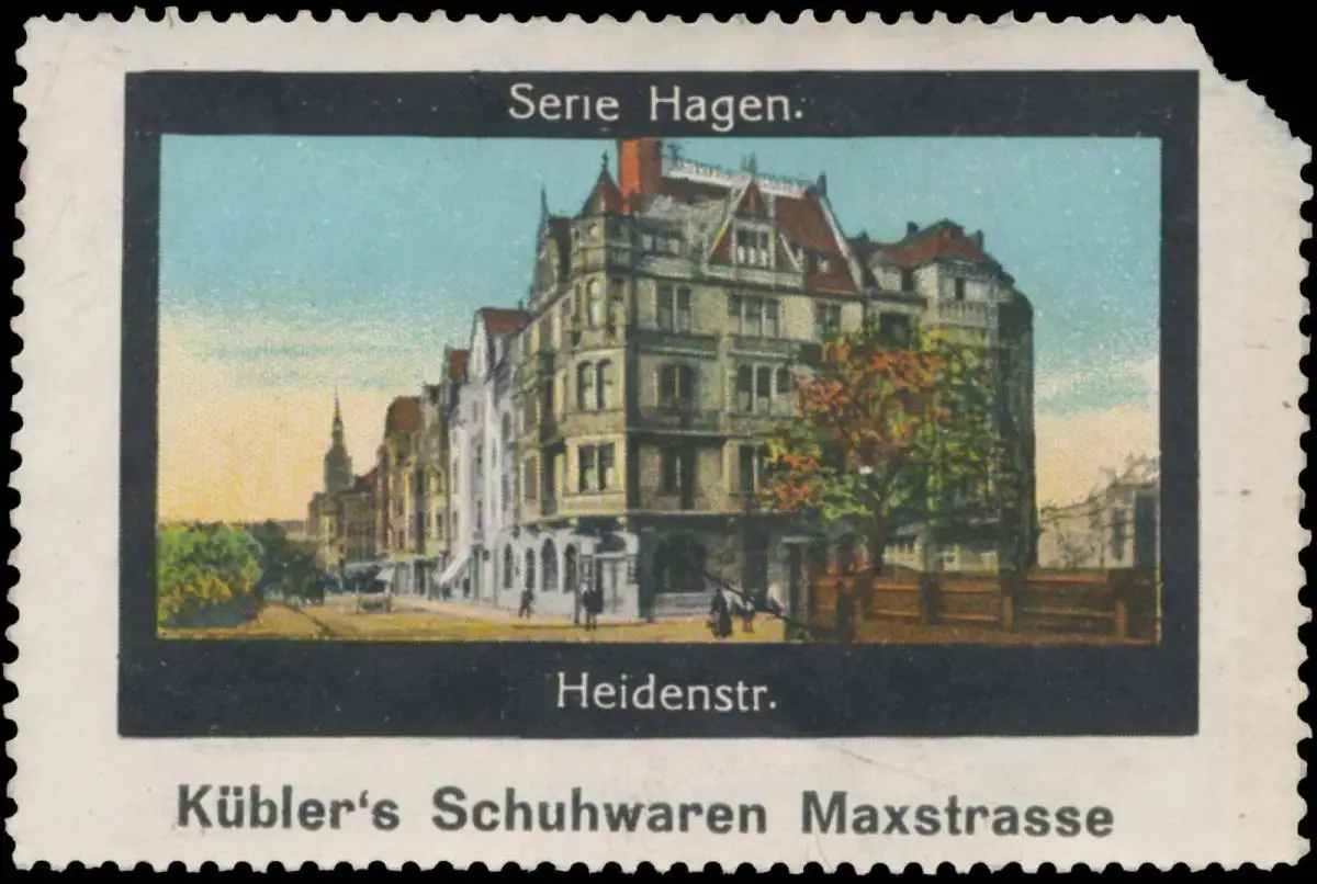 Serie: Hagen, Küblers Schuhwaren, Größe/Zustand: 5x7 , beschädigt, Original alte Reklamemarke die seinerzeit für die Werbung benutzt wurde
