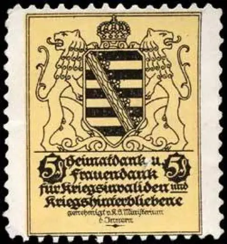 Für Kriegsinvaliden und Kriegshinterbliebene, genehmigt vom K.S. Ministerium des Innern, Spendenmarke, Sachsen, Größe/Zustand: 3x3 , guter Zustand, Original alte Reklamemarke die seinerzeit für die Werbung benutzt wurde