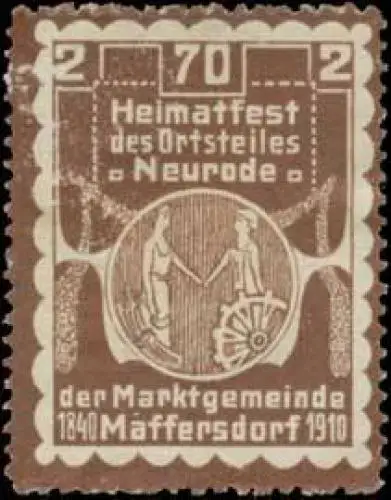 Heimatfest des Ortsteils Neurode der Marktgemeinde Maffersdorf, Größe/Zustand: 4x3 , guter Zustand, Original alte Reklamemarke die seinerzeit für die Werbung benutzt wurde