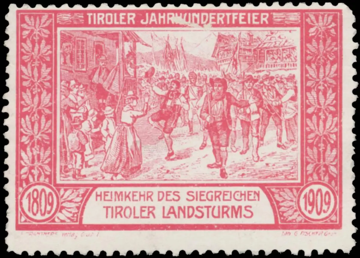 Tiroler Jahrhundertfeier, Wehrschatzmarke, Spendenmarke, Tirol, Größe/Zustand: 4x5 , guter Zustand, Original alte Reklamemarke die seinerzeit für die Werbung benutzt wurde