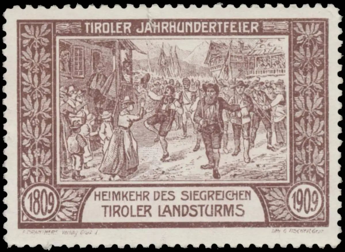 Tiroler Jahrhundertfeier, Wehrschatzmarke, Spendenmarke, Tirol, Größe/Zustand: 4x5 , guter Zustand, Original alte Reklamemarke die seinerzeit für die Werbung benutzt wurde