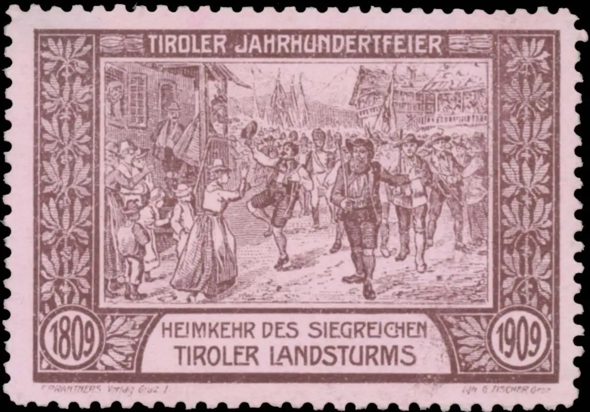 Tiroler Jahrhundertfeier, Wehrschatzmarke, Spendenmarke, Tirol, Größe/Zustand: 4x5 , guter Zustand, Original alte Reklamemarke die seinerzeit für die Werbung benutzt wurde