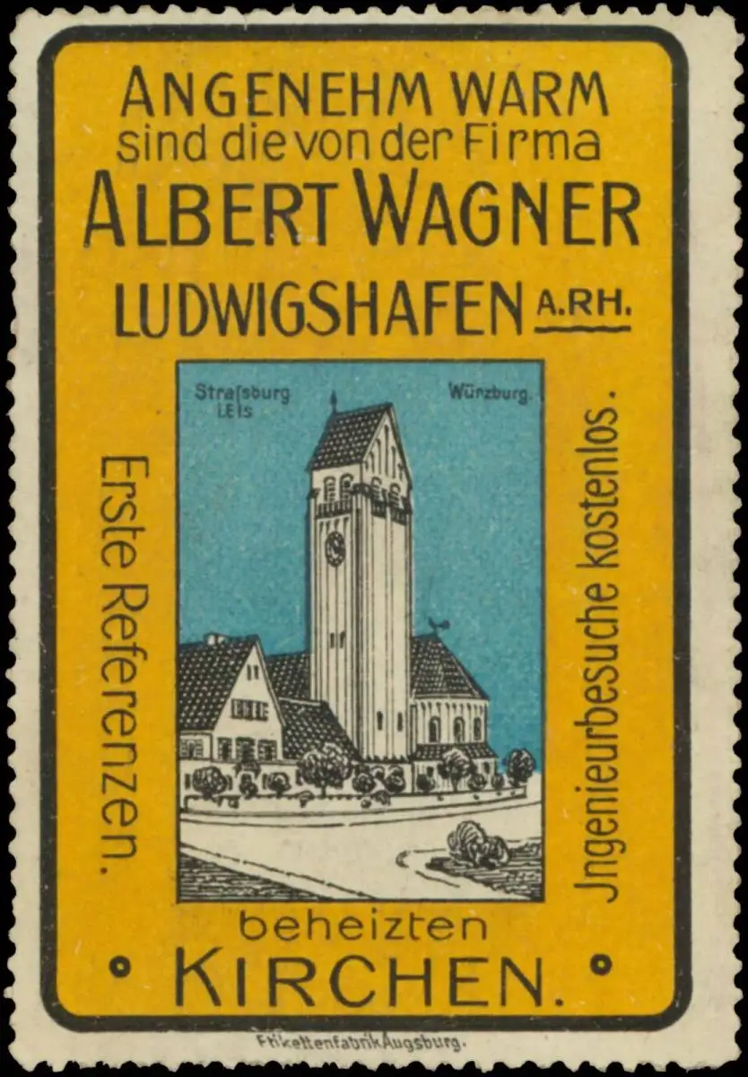 angenehm warm sind die von der Firma Albert Wagner beheizten Kirchen, heizen, Heizung, Größe/Zustand: 7x4 , guter Zustand, Original alte Reklamemarke die seinerzeit für die Werbung benutzt wurde