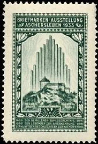 Den Gefallenen zum Gedächtnis, den Lebenden zur Anerkennung. Den künftigen Geschechtern zur Nacheiferung. Briefmarken - Ausstellung, grün, Größe/Zustand: 5x3 , guter Zustand, Original alte Reklamemarke die seinerzeit für die Werbung benutzt wurde