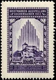 Den Gefallenen zum Gedächtnis, den Lebenden zur Anerkennung. Den künftigen Geschechtern zur Nacheiferung. Briefmarken - Ausstellung, dunkelviolett, Größe/Zustand: 5x3 , guter Zustand, Original alte Reklamemarke die seinerzeit für die Werbung benutzt wurde
