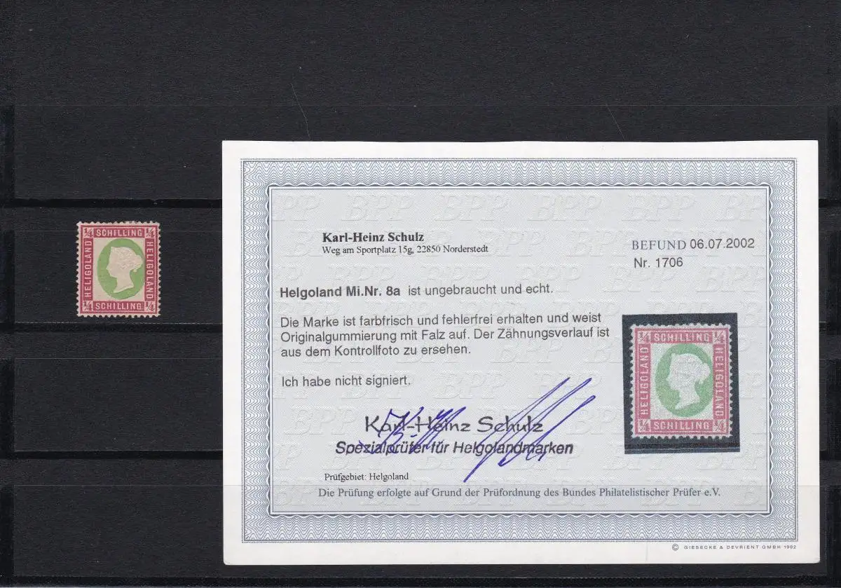 Helgoland: Minr. 8a, ungebraucht, BPP Befund