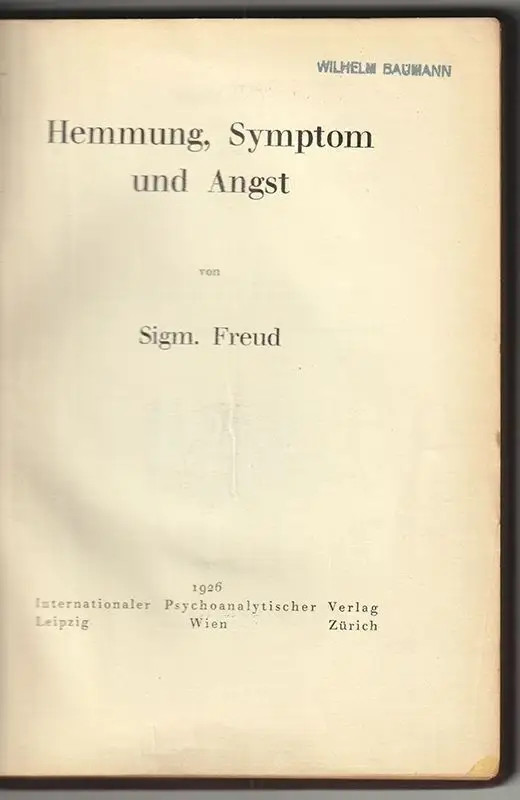 Bemerkungen: Meyer-Palmedo 1926d - "Angeregt von Ranks Theorie des Geburtstraumas; Jones hält diese Schrift für Freuds wertvollstes Werk aus der Nachkriegszeit." (Antiqu. Fritsch, Kat.9)