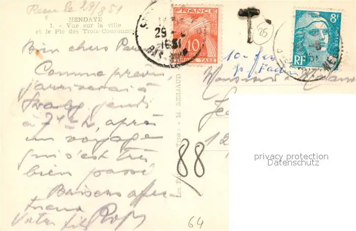 Hendaye_Pyrenees_Atlantiques Ville et Pic de Trois Couronnes Hendaye_Pyrenees postalisch gelaufen 1951 Erhaltung siehe scans [LiesaD40] LiesID40