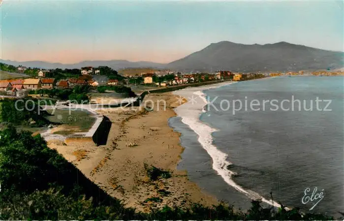 Hendaye_Pyrenees_Atlantiques Vue generale Plage au fond les Monts Espagnols Hendaye_Pyrenees