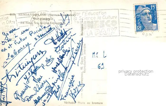Hendaye_Pyrenees_Atlantiques Vue générale Plage au fond les Monts Espagnols Hendaye_Pyrenees postalisch gelaufen 1953 Erhaltung siehe scans [FriedD77] Frierer