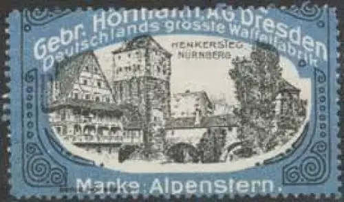 Deutschlands grösste Waffelfabrik, Waffeln Marke Alpenstern, Größe/Zustand: 3x5 , Fehldruck, guter Zustand, Original alte Reklamemarke die seinerzeit für die Werbung benutzt wurde