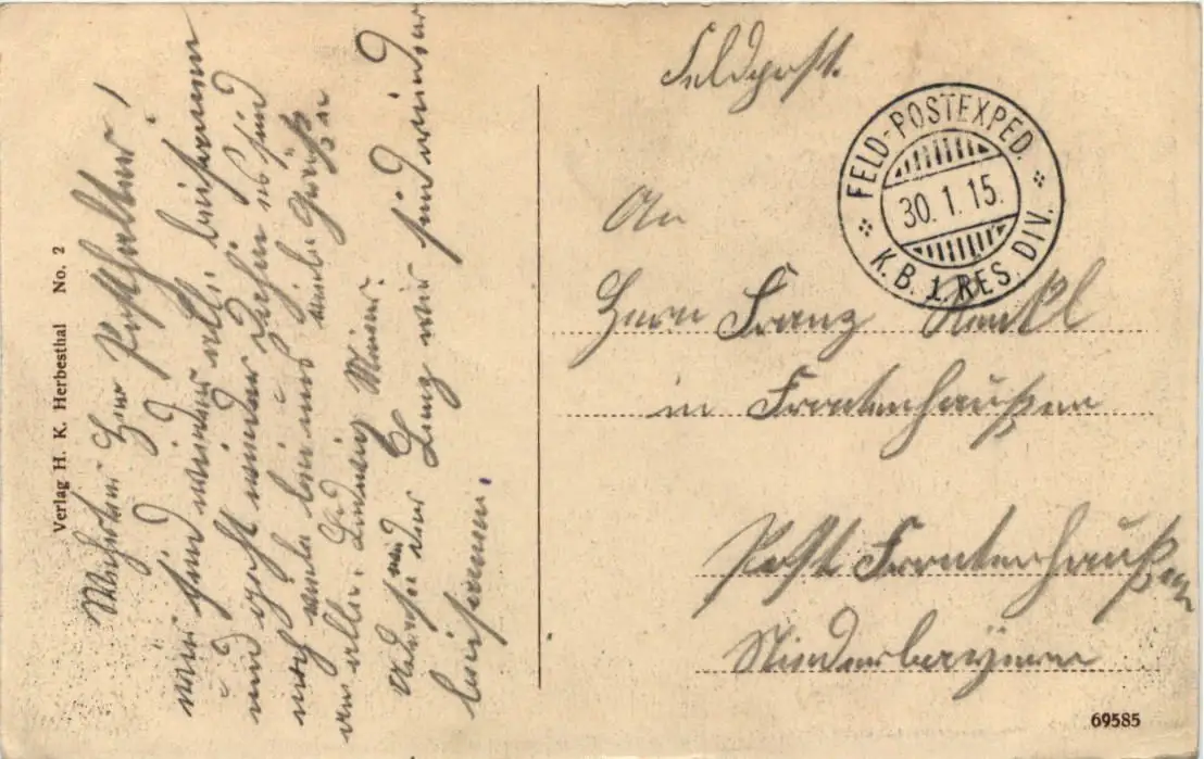 Herbesthal-Brücke über die Bahnstrecke - Feldpost 1. Bay Res. Division -631084