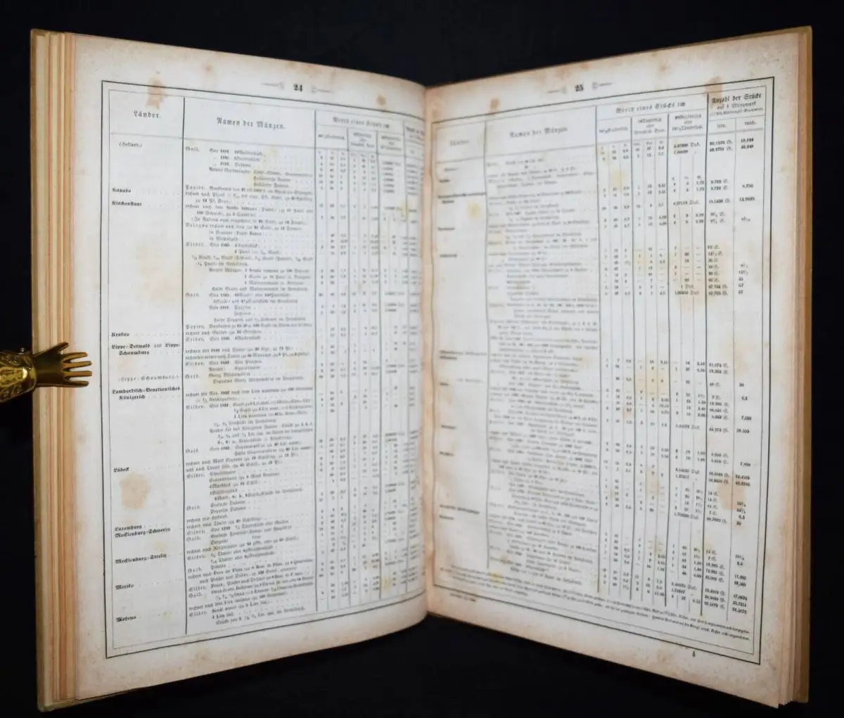 Gewichte“, Tafel des Rechnungs-, Silber-, Gold- und Papier-Geldes der