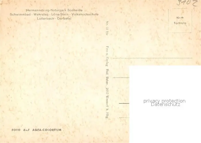 Hermannsburg Naturpark S?dheide Freibad Wehrsteg L?nsstein Lutterbach Hermannsburg postalisch nicht gelaufen nach 1965 Erhaltung siehe scans [LiesaD40] LiesID40