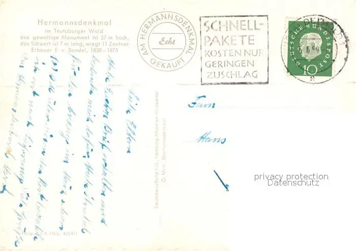 Hermannsdenkmal Fliegeraufnahme im Teutoburger Wald Hermannsdenkmal postalisch gelaufen nach 1965 Erhaltung siehe scans [LiesaD40] LiesID40