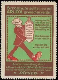 Strohhüte sollten nur mit Arucol gewaschen werden, Bekleidung, Größe/Zustand: 6x4 , guter Zustand, Original alte Reklamemarke die seinerzeit für die Werbung benutzt wurde
