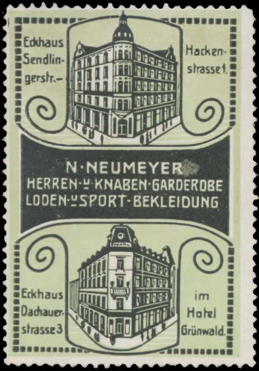 Loden- und Sport-Bekleidung, seegrün, Größe/Zustand: 6x4 , Fehldruck, guter Zustand, Original alte Reklamemarke die seinerzeit für die Werbung benutzt wurde