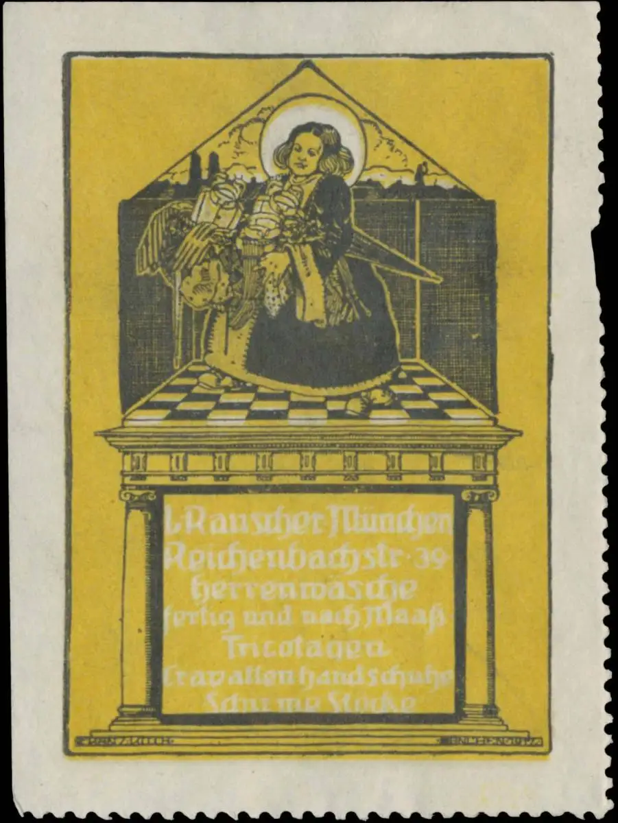 Wäsche, Schirme, Stöcke, Krawatten, Handschuhe, Münchner Kindl, Größe/Zustand: 7x6 , beschädigt, Original alte Reklamemarke die seinerzeit für die Werbung benutzt wurde