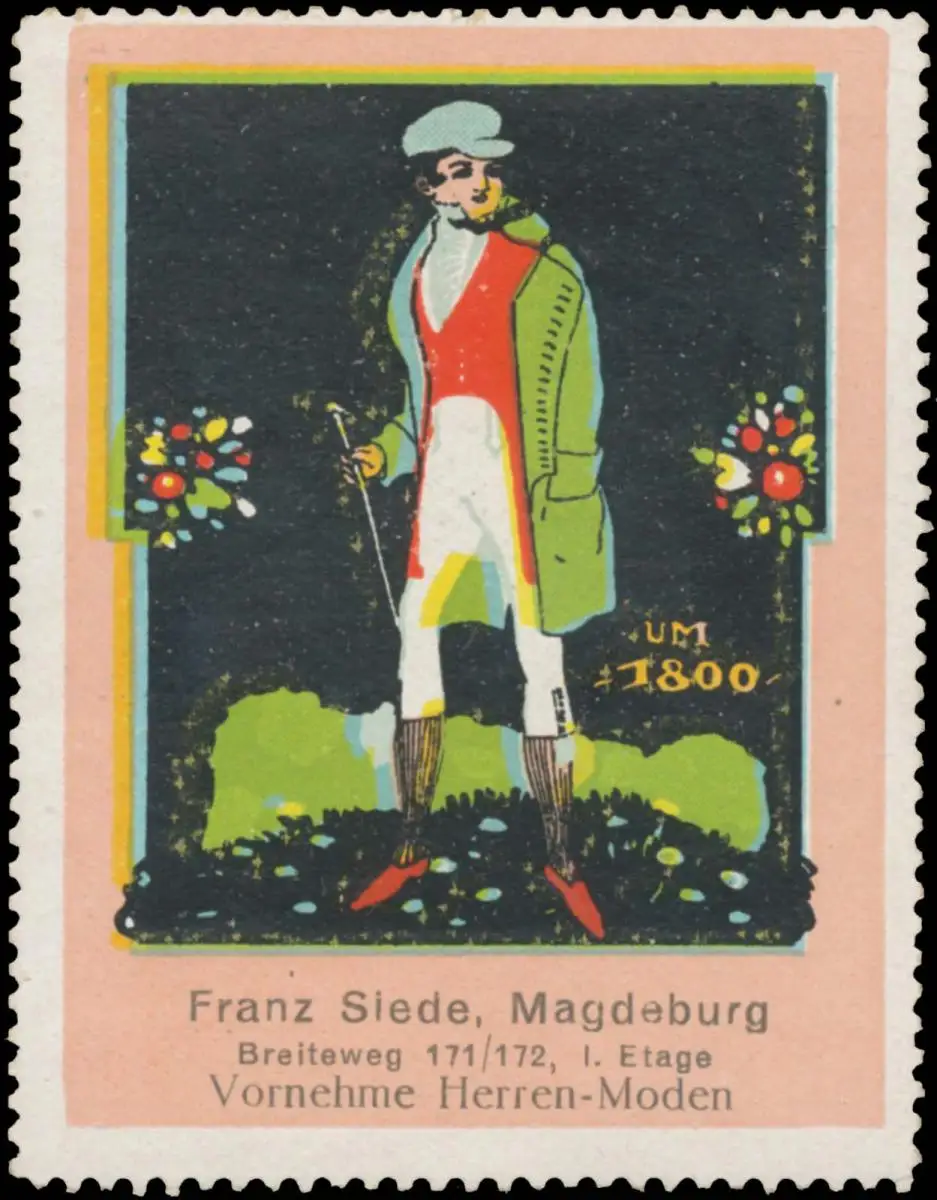vornehme Herren-Mode, Größe/Zustand: 6x4 , guter Zustand, Original alte Reklamemarke die seinerzeit für die Werbung benutzt wurde