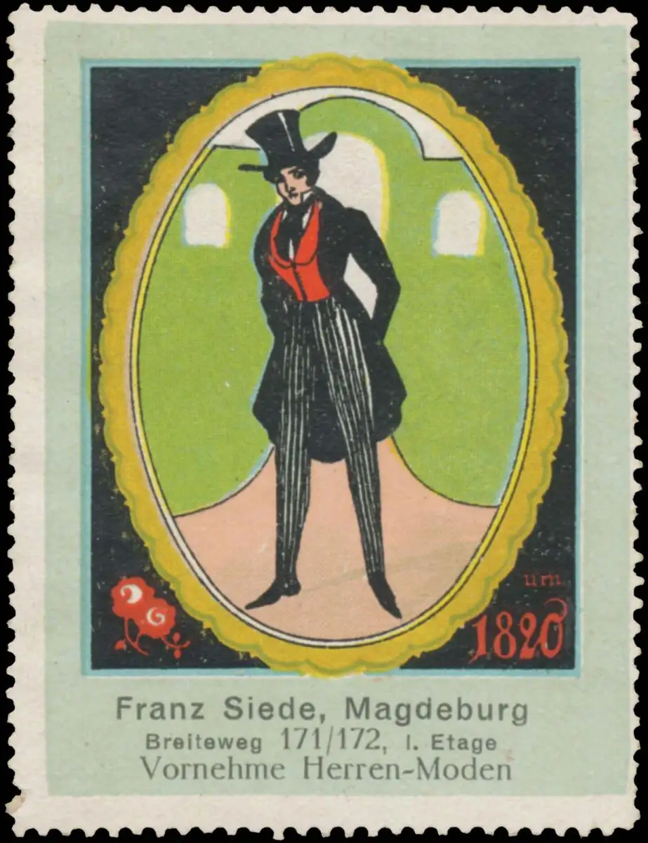 vornehme Herren-Mode, Größe/Zustand: 6x4 , guter Zustand, Original alte Reklamemarke die seinerzeit für die Werbung benutzt wurde