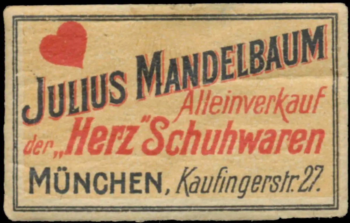 Etikett, Kaufingerstraße 27, Größe/Zustand: 2x4 , leicht beschädigt, Original alte Reklamemarke die seinerzeit für die Werbung benutzt wurde