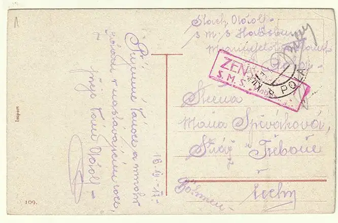 Bemerkungen: Gelaufen m. Stempel: Zensuriert/S. M. S. "Habsburg". Kastenst. zweizeilig KALIS 8 - P.20 neben K. u. K. MFPA/17. XII. 17/ d Pola.