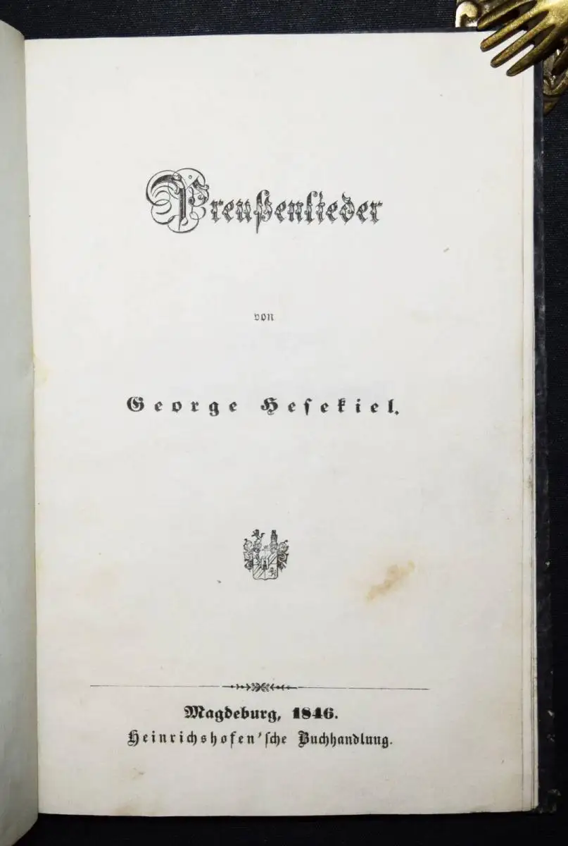 Hesekiel, (Johann) George (Ludwig). Preußenlieder. Magdeburg, Heinrichshofen’sche Buchhandlung 1846. 8°. 30 S. Marm. Pbd. d. Zt.