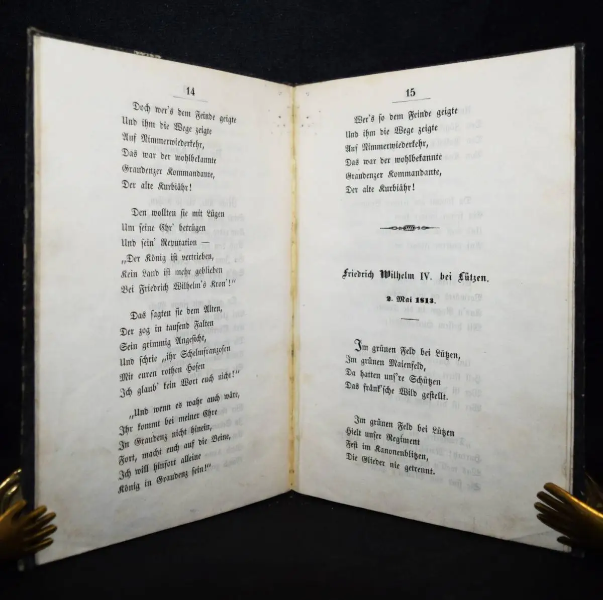Hesekiel, (Johann) George (Ludwig). Preußenlieder. Magdeburg, Heinrichshofen’sche Buchhandlung 1846. 8°. 30 S. Marm. Pbd. d. Zt.