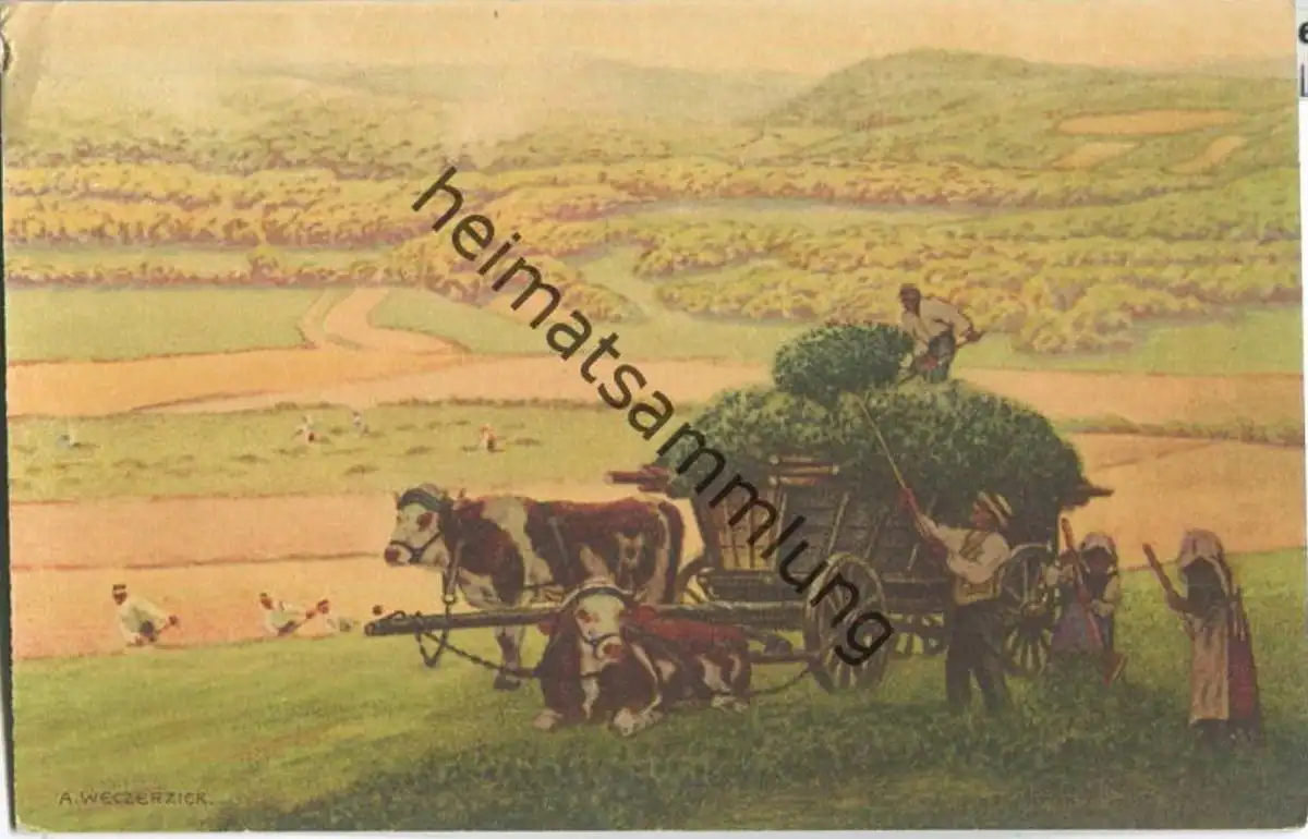 Heuernte - Ochsengespann - signiert A. Weczerzick (E41285) *