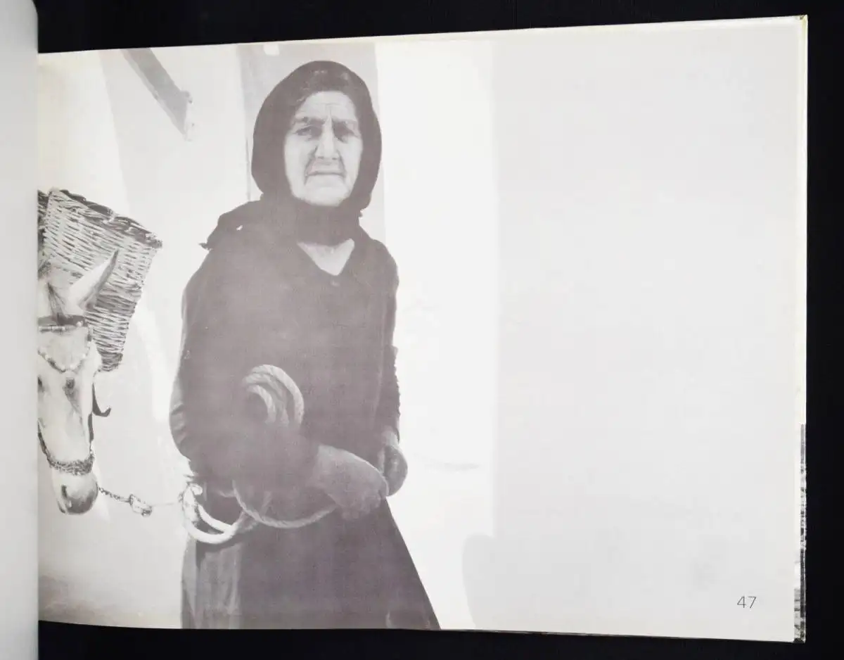 „Donna a Milos“ und mit Stempel der Fotografin, zeigt eine alte Frau und