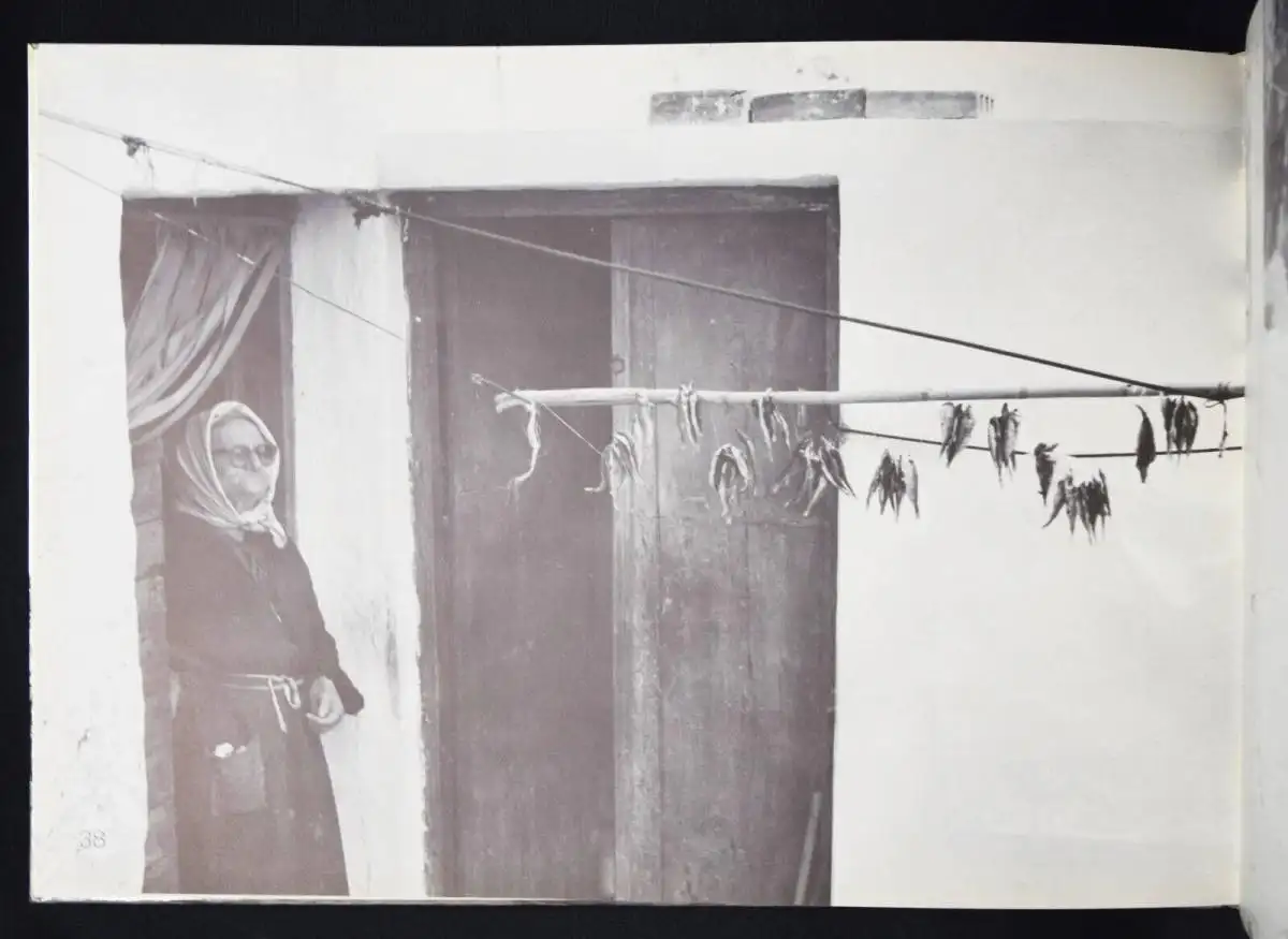 Sardinen, die zum Trocknen an einem Holzstab hängen. – Der Bildband mit