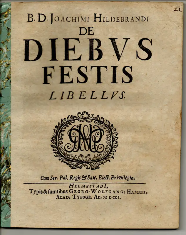 Hildebrand, Joachim: De Diebus Festis Libellus.