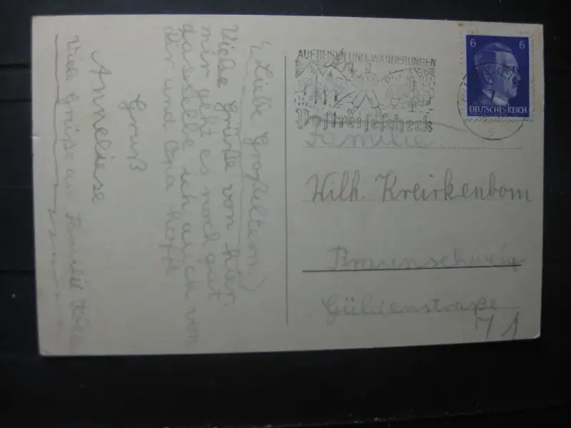 ca. 1940; Unschärfen, Spiegelungen, Verbiegungen, Verwerfungen sind allein durch das abfotografieren bedingt; Karte ist beidseitig abgebildet, Erhalt siehe Scan; ist das Foto qualitativ nicht aussagekräftig genug, kann es besseres Foto angefordert werden. Rückgabe bei Karten ist generell ausgeschlossen.